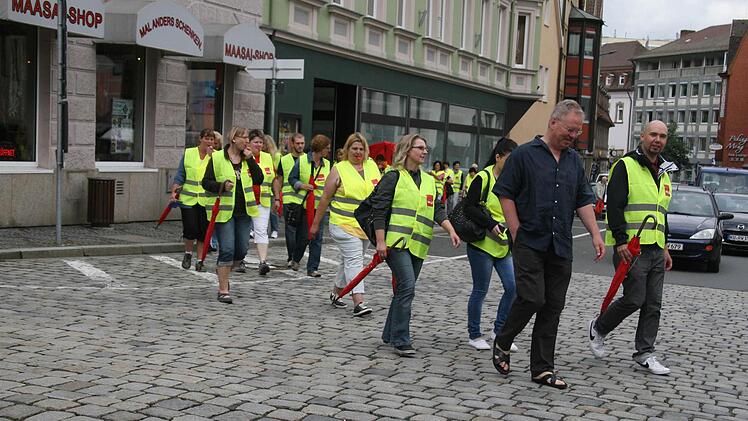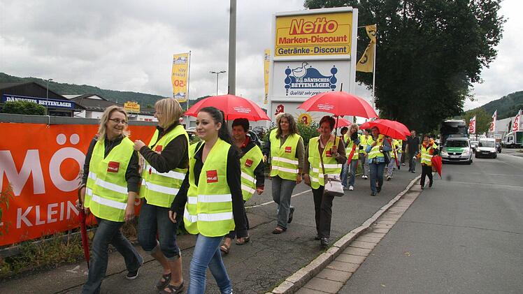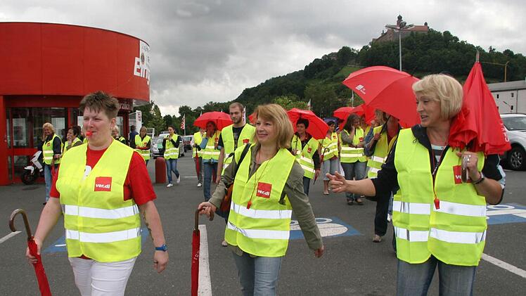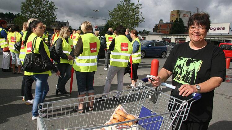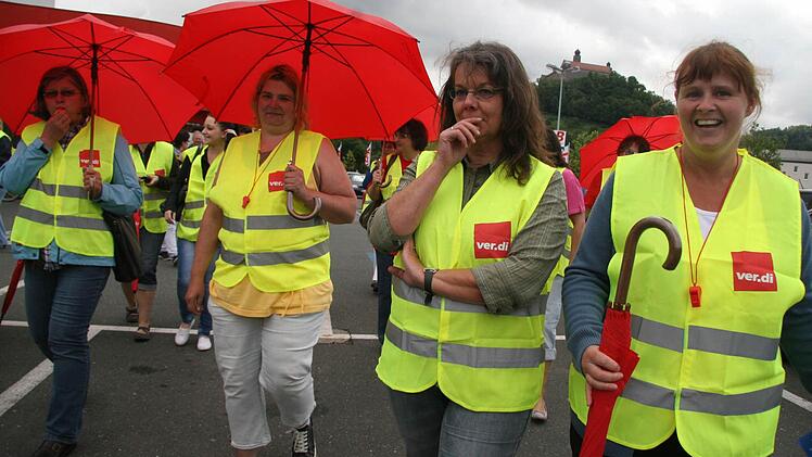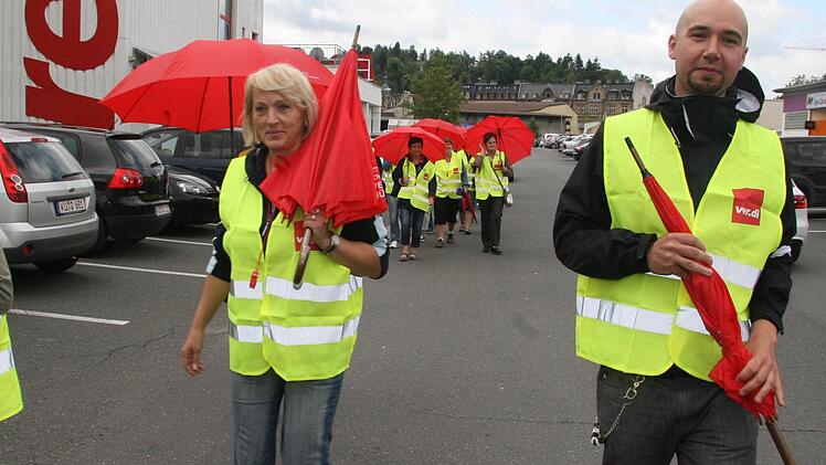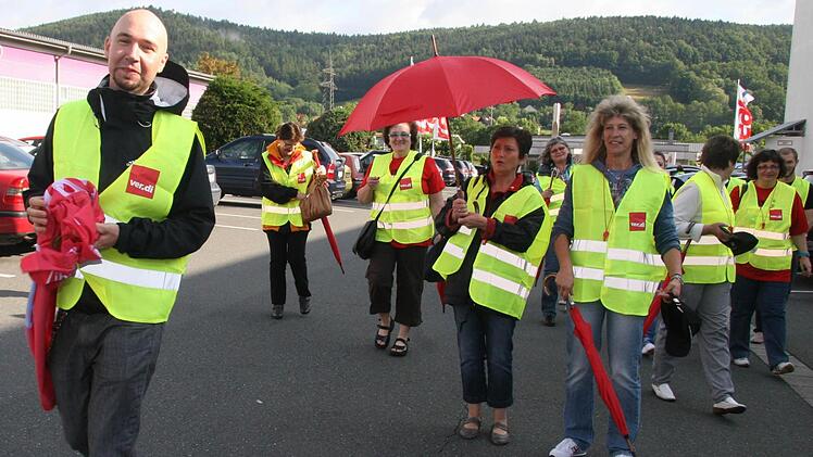 In Kulmbach traten am Freitag rund dreißig Mitarbeiter in den Streik. Der Verkauf ging trotzdem weiter, da Mitarbeiter mit Werksverträgen in die Bresche sprangen.