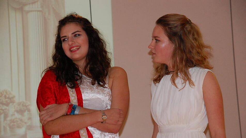 Bei ihren Recherchen sind die Schülerinnen und Schüler auch auf allerlei Überraschungen gestoßen. "Im alten Rom gab es schon Graffitis, doofe Sprüche an die Wände geschrieben, ganz genau wie heutzutage", sagte Anna Eber. Als Neaira verkörperte sie das reale Schicksal eines jungen Mädchens im alten Korinth, das im Alter von zehn Jahren in ein Bordell verkauft wurde. "Es war damals gesellschaftlich vollkommen akzeptiert, dass Männer sich dort vergnügten, denn die Aufgabe der Frauen zu Hause war es, Kinder zu gebären."