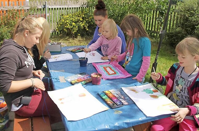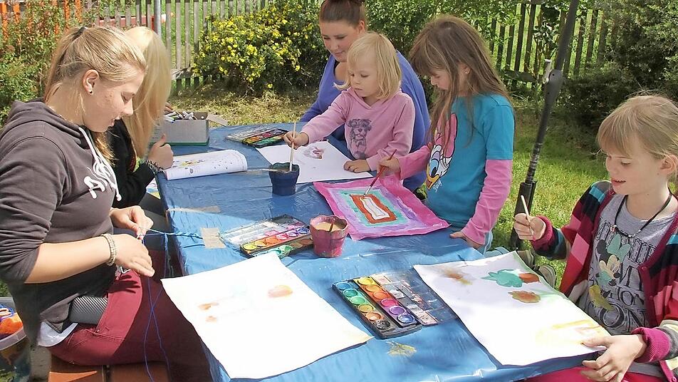 "Ich mache gerade eine Ausbildung zur Kinderpflegerin", erzählt Betreuerin Nummer zwei: Julia Dippold ist 16 Jahre alt und geht in Kronach zur Schule. Das Betreuungsteam wird komplettiert durch Julia Ossendorf: Sie ist 17 Jahre alt und malt mit einigen Kindern.