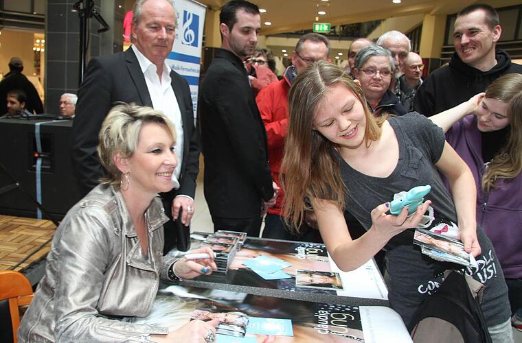 Hunderte Fans und Neugierige kamen am Wochenende ins Einkaufszentrum "Fritz", um den Schlagerstar Claudia Jung hautnah zu erleben. Die beliebte Sängerin stellte ihre neue CD "Seitensprünge" vor und freute sich über den "Mega-Andrang".