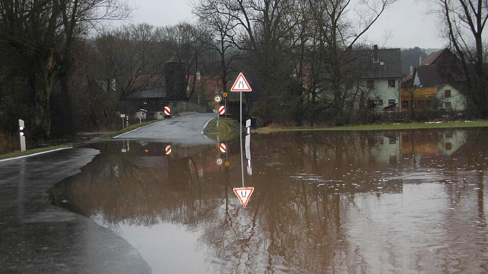 Nach dem Tauwetter und dem Regen der letzten Tagen sind auch im Landkreis Kulmbach einige Straßen überflutet. Dramatisch ist die Situation allerdings nicht. Jedoch können die Pegel in den nächsten Tagen durchaus noch steigen, wenn es weiter regnet.