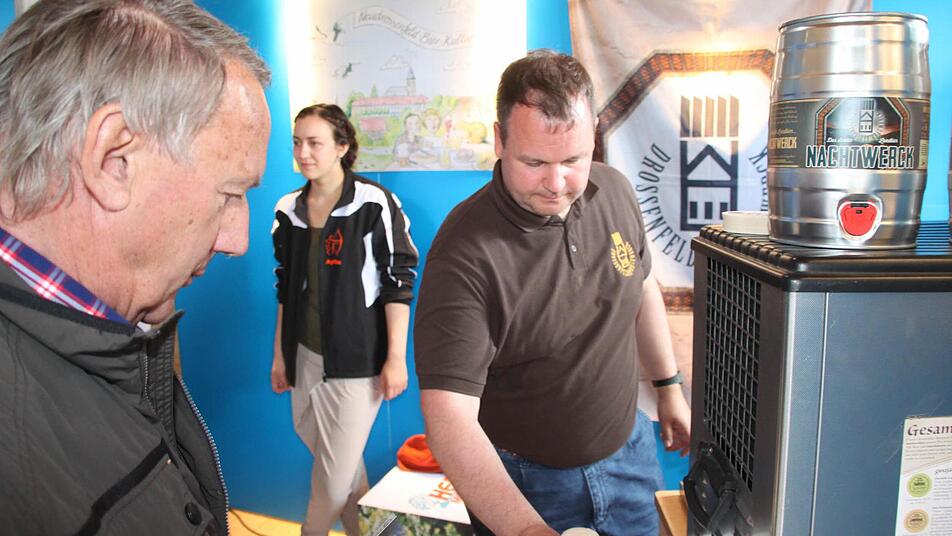 Peter Schuhmann vom Drossenfelder Bräuwerck bestätigt den Besucheransturm: 1000 Probiergläser hat er am Donnerstag ausgeschenkt. Am Freitag ließ es sich am Vormittag aufgrund des schlechten Wetters dafür etwas ruhiger an.