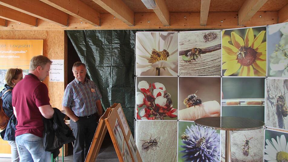 Nur wenige Meter vom Regionalpavillon entfernt informiert der Kreisverband Gartenbau und Landespflege Kulmbach über "Mehr Natur im Garten", speziell geht es um den Lebensraum für Hummeln und Wildbienen. Vorsitzender Günter Reif hat dazu jede Menge eigener Fotos mitgebracht und hält auf Wunsch auch kurze Dia-Vorträge.