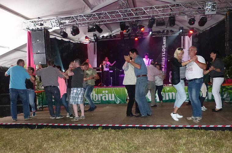 Parallel sorgte im Festzelt die oberfränkische Spitzenband "Die 3" bis in die frühen Morgenstunden für eine prächtige Stimmung. Am Samstagabend trafen sich die vielen Gäste aus Nah und Fern im Festzelt, um mit der Partyband "Fristlos" so richtig abzutanzen.