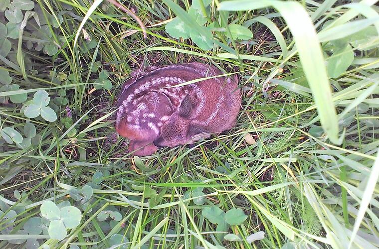 Ein Rehkitz hat (noch) keinen Fluchtinstinkt. Bei Gefahr drückt es sich auf den Boden und wird damit nahezu unsichtbar - auch für Landwirte, die ihre Wiesen mähen. Fotos: Otto Kreil