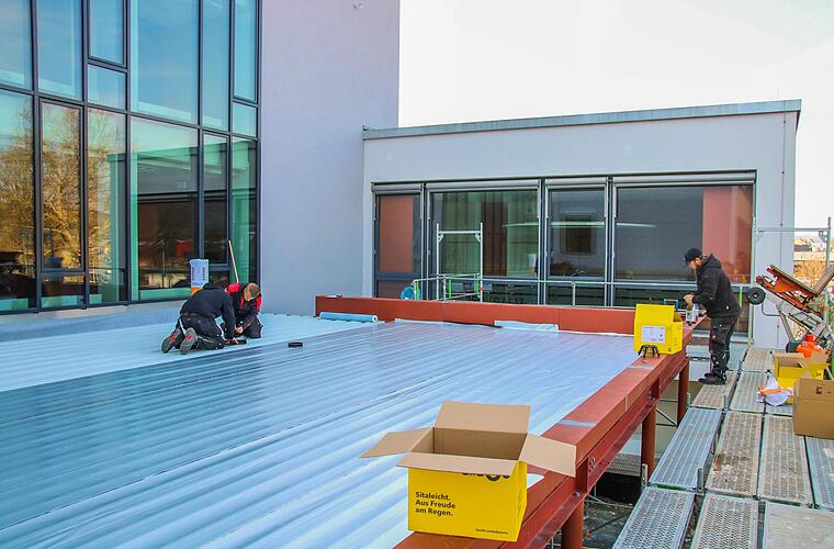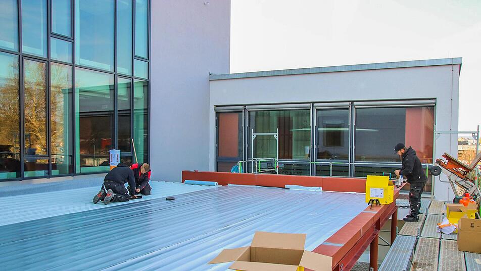 Die vergangenen Wochen ging es etwas schleppend voran, das weiß Andreas Schülein. "Weil die Nordfassade noch eingerüstet war, konnten wir nicht weitermachen", sagt der Kreisbaumeister. Der Putz musste noch  aufgebracht werden - und das war witterungsabhängig nur bedingt möglich. Doch jetzt gehen die Arbeiten am Eingang des Landratsamts wieder richtig los.
