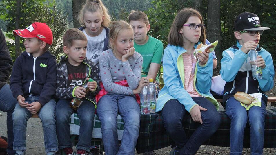 Für die Erwachsenen hatten die Wirtsleute Christine und Stefan Sesselmann den Grill angeheizt und Bratwürste und Steaks aufgelegt. Nach jedem Märchen gab es eine kleine Pause, um sich zu stärken. Doch die Grenzen verwischten. Denn die Kinder fanden es gemütlich, zu den Geschichten zu essen und zu trinken. Auch einige Erwachsene waren so fasziniert, dass sie lieber in der Märchenrunde Platz nahmen als an den Bierbänken.