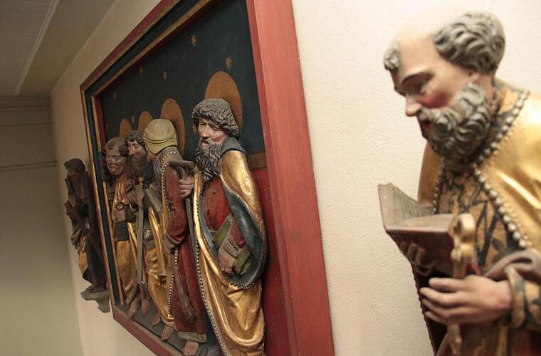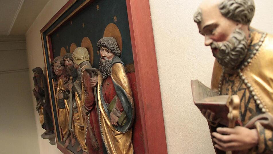 Die zwölf bemalten Figuren sind die ältesten Stücke in dem kleinen Gotteshaus, das über den Himmelkroner Ortsteil wacht. Die Darstellungen, die wahrscheinlich von einem früheren gotischen Flügelaltar stammen, werden um das Jahr 1510 datiert.