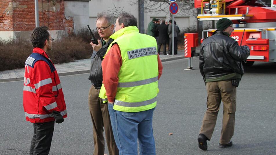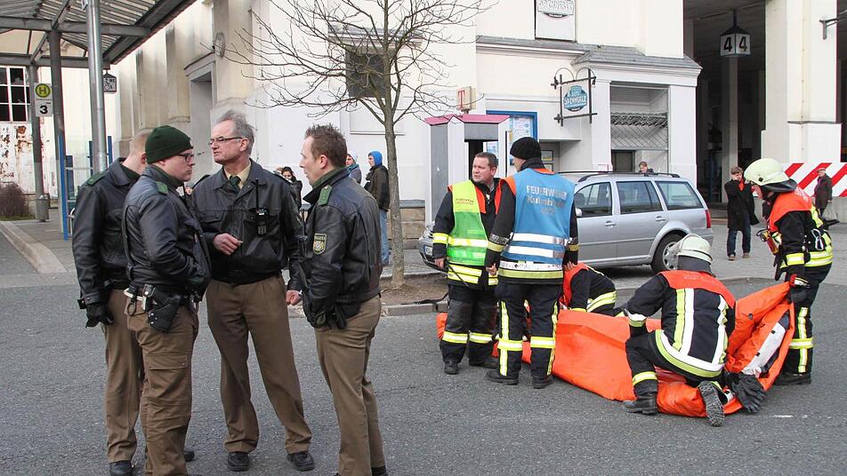 Die Polizei hat das Gelände beim Busbahnhof, wo viele Schulkinder und Schaulustige stehen, abgesperrt. Die Busse können nicht durchfahren, müssen in der Heinrich-von-Stephan-Straße wenden. Insgesamt sind etwa 50 Rettungskräfte von Polizei, Feuerwehr, BRK und Bergwacht im Einsatz.