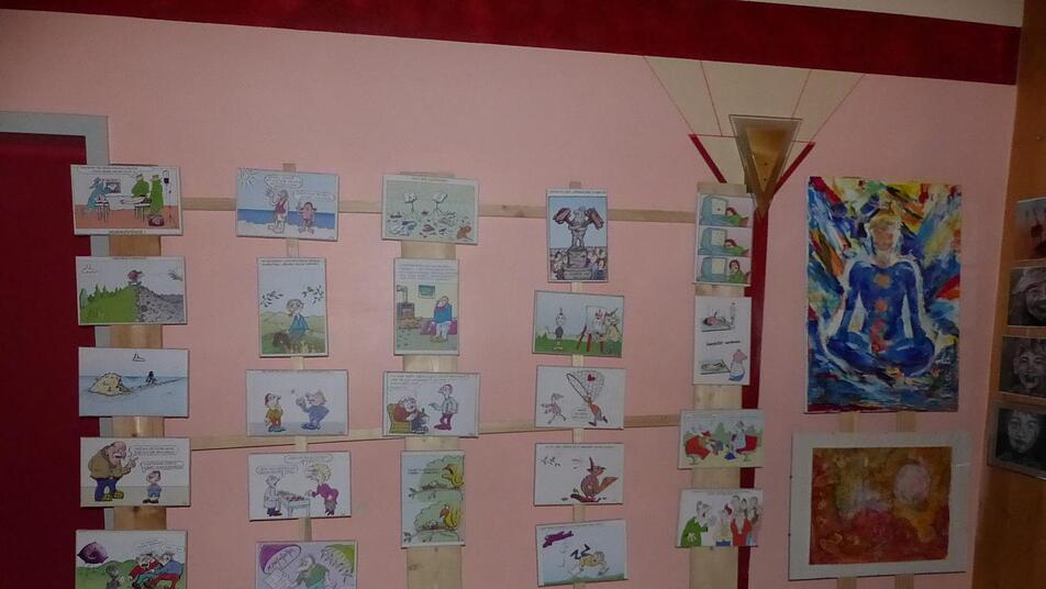Zusammengestellt von Robert Thern durften Lichtbilder aus der LQN-Heimat auf einer Großleinwand angesehen werden. Sie fanden, wie die ausgestellten Werke von Christine Faust, Lena Heinz, Alexandra Kolloch, Alois Kuhn, Gertrud Megerle, Emeli Mesenez, Aenn Renee Pelz, Bettina Schammann, Edina Thern und Luitgard Utz reges Interesse und das Publikum ließ sich von der großen Vielfalt gerne überraschen.