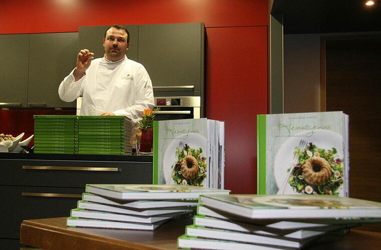 Mit seinem ersten Kochbuch "Heimatgenuss - mehr als nur Broudwärschd", das 2012 erschienen ist, hat Gourmet-Koch Alexander Schütz aus Wartenfels einen Volltreffer gelandet. Denn jetzt wurde das Buch beim 47. Literarischen Wettbewerb der Gastronomischen Akademie Deutschlands mit der Silbermedaille ausgezeichnet.