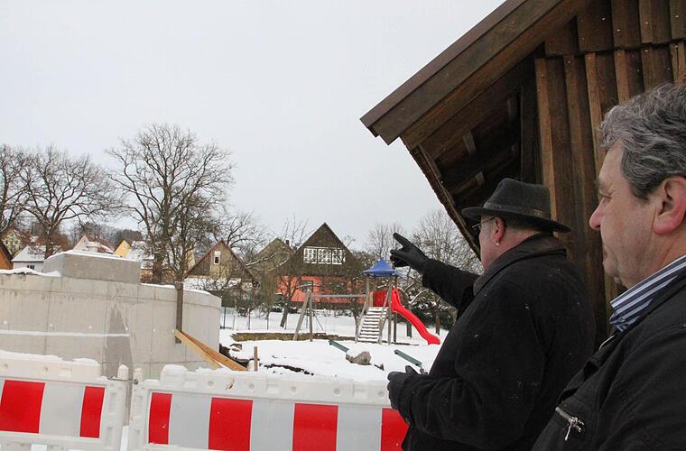 Eingangs hatte Bürgermeister Adam die Entstehungsgeschichte des Behälters geschildert und darauf aufmerksam gemacht, dass der alte, 74 Kubikmeter fassende Behälter am ehemaligen Feuerwehrhaus nicht nur undicht, sondern auch schwer mit dem Feuerwehrfahrzeug erreichbar ist.