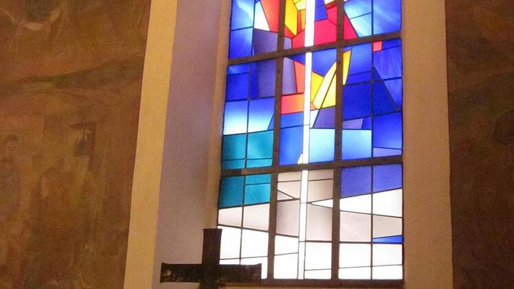 Das hat Auswirkungen - vor allem auf den Chorraum. Der bisherige Altar wird durch einen 60 Zentner schweren Altar aus Juragestein ersetzt und bekommt im Vorraum einen neuen Platz. Auch das Original-Buntglasfenster aus der Bauzeit - ein dominierendes rotes Kreuz inmitten von blauem Glas - hat ausgedient.