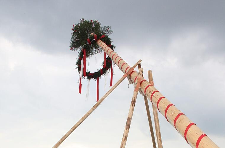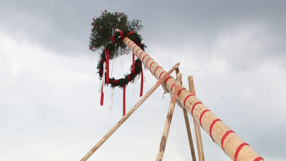 Gut gesichert und trotzdem geklaut: Elf tatkräftige Azubis brachten den Maibaum des Ferienhofs Kosertal unlauter in ihren Besitz.