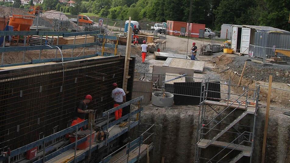 Gigantische Ausmaße hat das neue Pumpwerk. Die Baustellensohle reicht zehn Meter tief bis auf den Fels. Wenn das Pumpwerk fertig ist, soll eine Spundwand gestellt werden, die verhindern soll, dass Wasser von unten in die Keller drückt. Dabei geht es laut Künzl nicht um eine Senkung des Grundwasserniveaus, sondern um eine Stabilisierung.