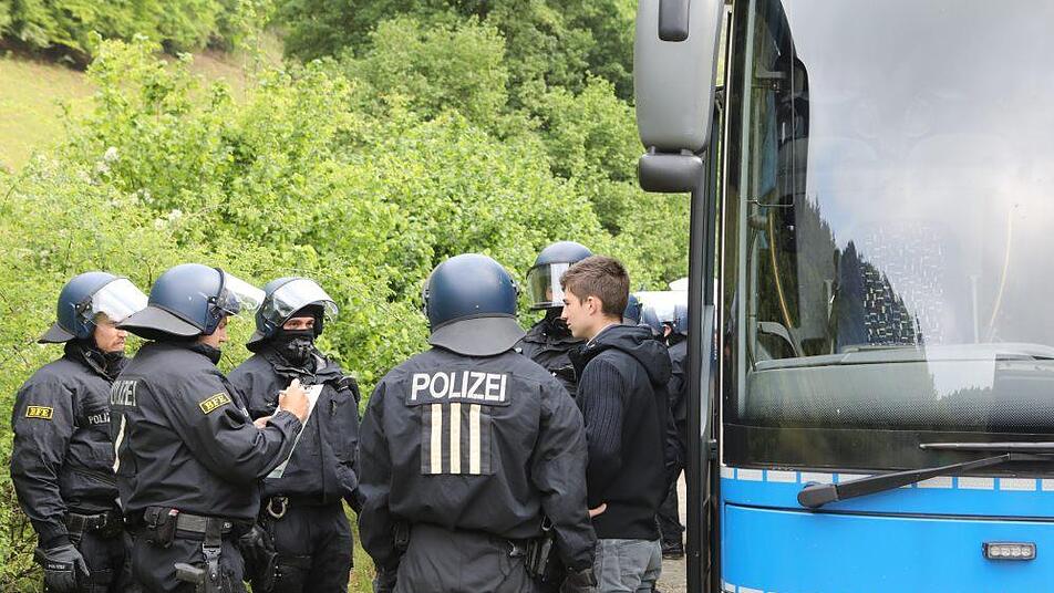 Für die 200 Beamten der Bundespolizeiabteilung Bayreuth, die zu solchen Anlässen regelmäßig die "normale" Polizei unterstützen, ist die Großübung ein Routineeinsatz. So wie er jedes Wochenende bei Fußballspielen in der Bundesrepublik stattfinden. Personenkontrollen. Störer und gewaltbereite Fans von den friedlichen trennen. "Abfischen" nennt sich das im Jargon. Die Kräfte können zu diesem Zeitpunkt noch nicht ahnen, dass das Fußballspiel bald zur Nebensache wird.