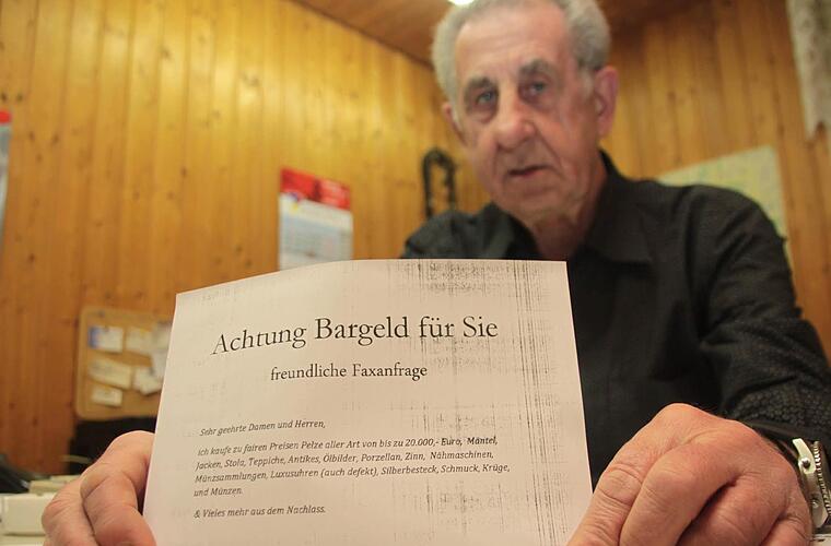 "Achtung Bargeld für Sie" steht in einer "freundlichen Faxanfrage", die den Mainleuser erreicht hat. Darin bietet ihm ein "Herr Franz" an, Mäntel, Jacken, Stola, Teppiche, Antikes, Ölbilder, Porzellan, Münzsammlungen, Luxusuhren, Silberbesteck, Schmuck, Münzen und vieles mehr zu fairen Preisen anzukaufen.