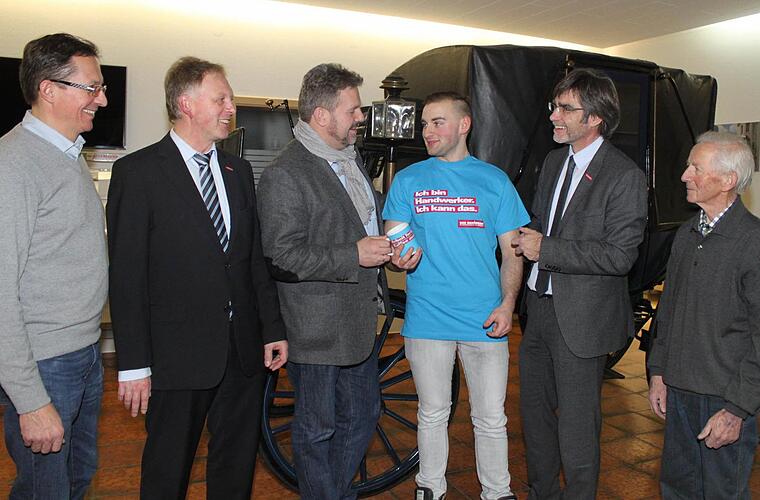 Um Konstantin Henkel zum Erfolg zu gratulieren, waren eigens der Präsident der Handwerkskammer für Oberfranken, Thomas Zimmer, und Hauptgeschäftsführer Thomas Koller nach Mainleus gekommen.