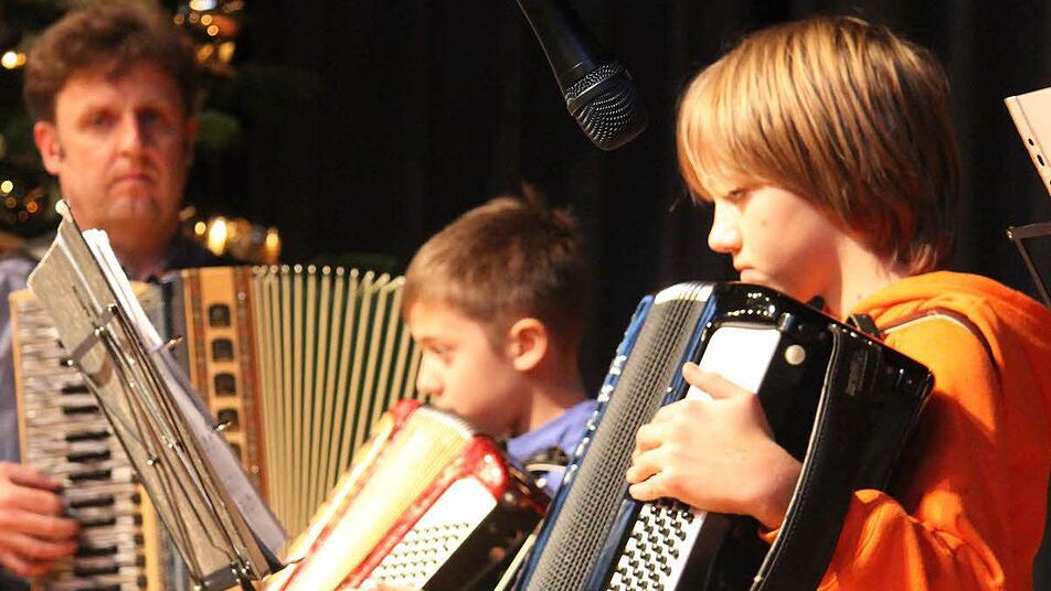 Saskia Porzelt eröffnete dann das Programm mit ihrer Trompete. Cantabene - bestehend aus Siegfried, Karin, Nora und Sean Felix Günther - begeisterten mit weihnachtlichen Weisen, das Akkordeon-Ensemble des Musikinstituts war ebenfalls mit von der Partie. Simeon Schmidt und Hannes Krasser wagten sogar Solo-Auftritte.