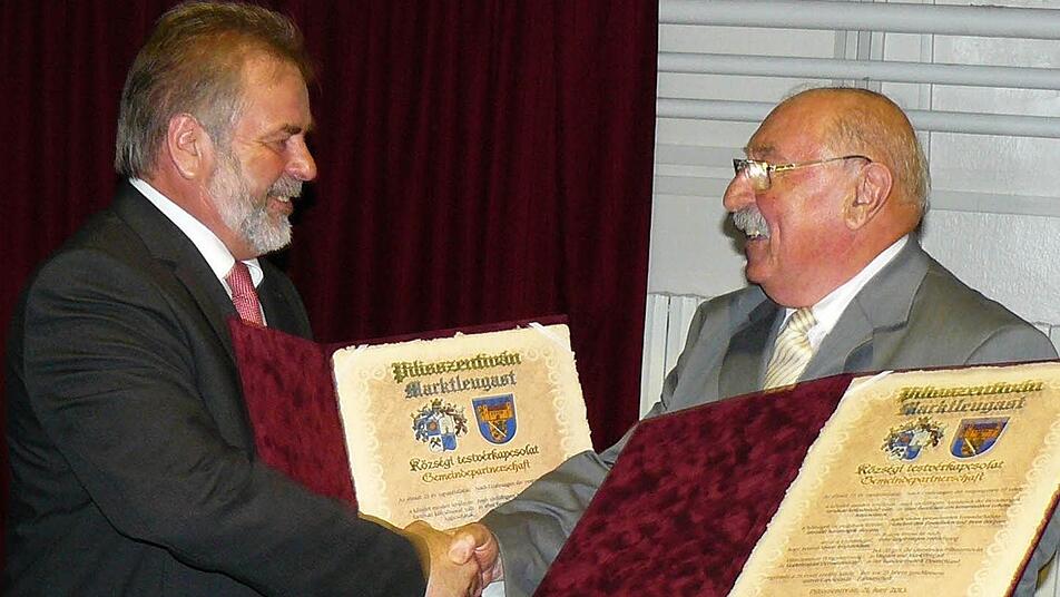 Urkunden unterzeichnet Im Rahmen des Festabends setzten die Bürgermeister Gabor Penzes und Norbert Volk ihre Unterschriften unter Urkunden, die die harmonische Verbindung bestätigen. "Der Initiator für Partnerschaft war Marktleugast, wo Persönlichkeiten wie Georg Bauer und Bürgermeister Manfred Huhs sowie die Gemeinderäte die Beziehung anboten", sagte Pilisszentivans Bürgermeister Gabor Penzes.