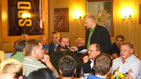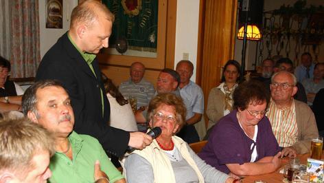 Sie ließen es richtig krachen, die über 80 Marktschorgaster Bürger, die zur jüngsten Runde von "Rundschau unterwegs" am Donnerstagabend in den Gasthof "Drei Kronen" gekommen waren. Dazu musste Siegfried Walter vom Brauchtumsverein seine mitgebrachten Hand- und Schaftböller gar nicht abfeuern: Auch so war Stimmung Trumpf beim gut zweistündigen Talk mit BR-Redaktionsleiter Christian Holhut und Redakteur Jürgen Gärtner. Stimmung, für die auch Berthold Müller sorgte, der mit seiner Akkordeonmusik die Marktschorgaster zum Mitsingen und Schunkeln animierte.