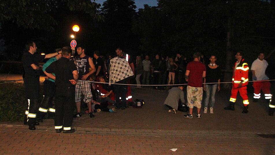 Aus einer Rangelei wurde eine Schlägerei. Einige der Beteiligten versuchten sich in die Einsatzzentrale für die Rettungs- und Sicherheitskräfte zu flüchten, die für die Dauer des Altstadtfestes in der Dr.-Stammberger-Halle eingerichtet ist. Von ihren Kontrahenten wurden sie dorthin verfolgt. Zwar versuchten die dort anwesenden Rettungskräfte, die jungen Leute fern zu halten, wurden von denen aber massiv angegangen.