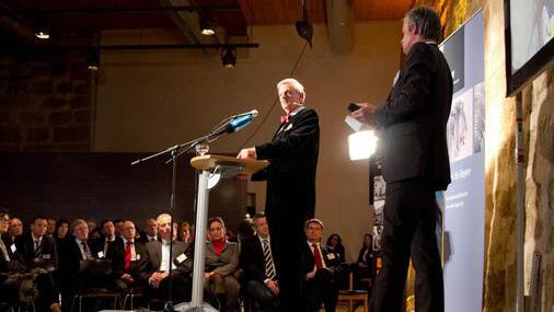 Hanns-Peter Ohl, Vorsitzender Oberfranken-Ost für die Metallarbeitgeber, sprach das Bekenntnis der Maschinenbauer zum Euro und zu Europa als Wirtschaftsraum aus. "Dank der Größe des Währungsraums ist der Euro gegenüber Drittwährungen weniger schwankungsanfällig als es die D-Mark wäre", so Ohl. An Reformen forderte er eine verbindliche einheitliche Finanzpolitik der EU-Mitgliedsstaaten, einen dauerhaften Stabilitätsmechanismus für die Eurozone sowie eine wachstumorientierte Wirtschaftspolitik. Außerdem forderte er einen strikten Sparkurs der Bundesregierung: "Der Staat nimmt nicht zu wenig ein, sondern er gibt zu viel aus."