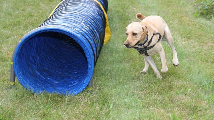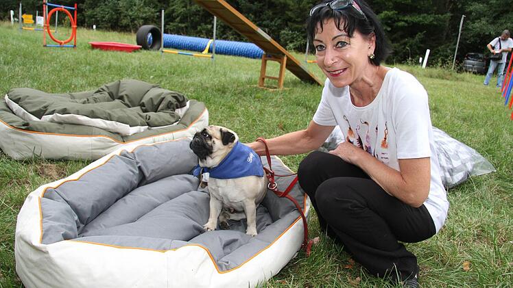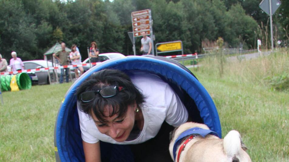 Nero wollte zwar nicht durch die Tunnel gehen, dafür zeigte er seine Begeisterung über den Hindernis-Parcours, indem er Frauchen Franziska Bock mit der Leine foppte und die Leine immer wieder hochwarf und Fang-mich mit Frauchen spielte. Auch Mops Bobby hatte keine rechte Lust auf Hindernislauf. Deshalb trug Frauchen Gudrun Ruckdeschel ihren Bobby schlicht und einfach über die Hindernisse, krabbelte sogar selbst durch den Tunnel. Und am Ende kam Bobby auf Platz zwei und heimste ein neues Bettchen ein. Auf Platz drei landete die slowenische Hündin Iwa, geführt von "Flinke Pfoten"-Chefin Verena Stenzel. Insgesamt sieben Teilnehmer gingen bei der Zamperl-Show an den Start.