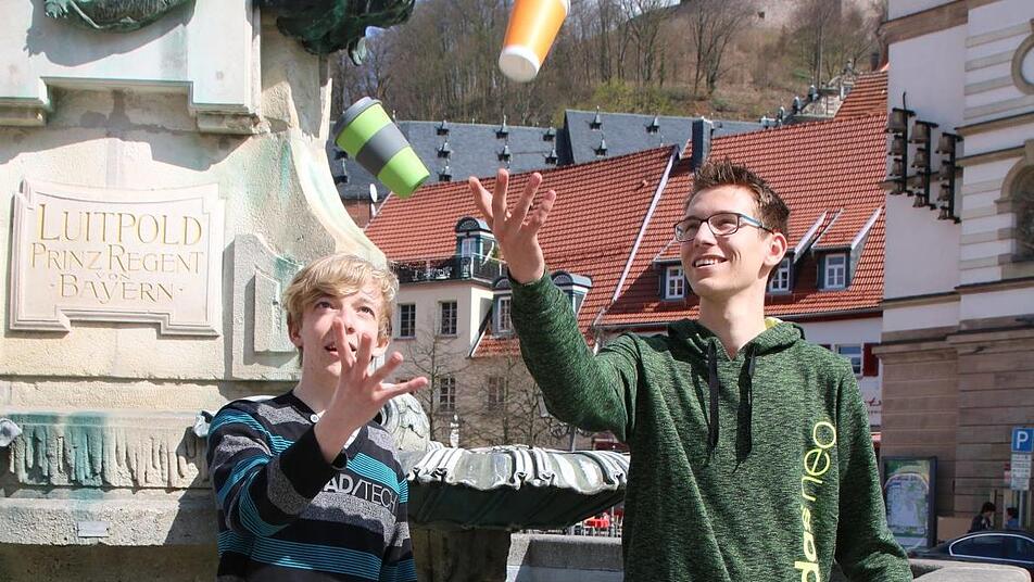 Da die Lust auf Koffein öfter mal unverhofft kommt und der Mehrwegbecher dann nicht zur Hand ist, haben sich Schüler des MGF ein Pfandsystem überlegt. "Viele haben ja inzwischen Mehrwegbecher. Das Problem ist, dass die nie jemand mitnimmt", sagt Patrick Bär vom Projektteam der Schule.