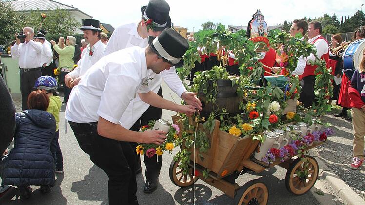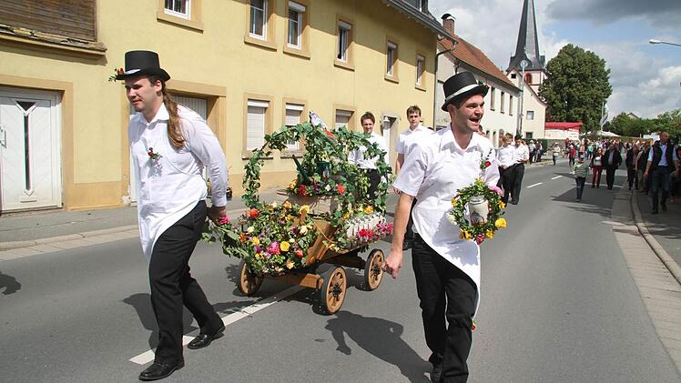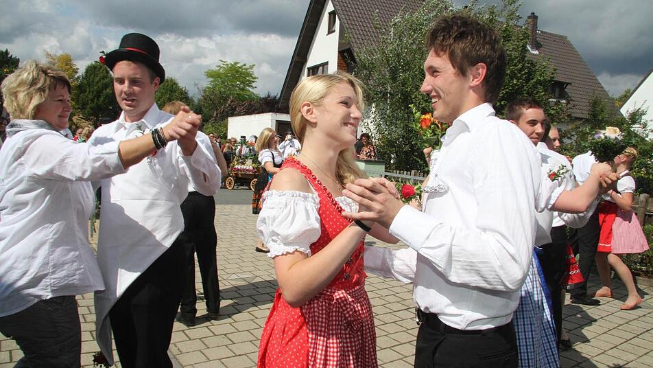 Die Kerwa-Tradition wird in Melkendorf hoch gehalten. Und so tanzten sich beim heutigen Kerwa-Umzug die Ortsburschen und -madla durch den ganzen Ort.