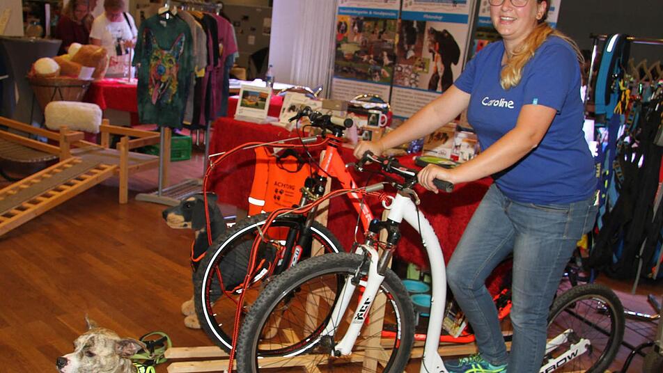 Gleich nebenan präsentierte Caroline Buß einen Dog-Scooter. Das ist ein Roller für Frauchen oder Herrchen, ausgestattet mit einem Geschirr, damit der Vierbeiner kräftig ziehen kann. "Das ist für Hunde ab 20 Kilo. Sie müssen aber gesund sein. Man sollte sie, ehe sie als Zughunde eingesetzt werden, untersuchen lassen", betonte Buß. Ihr Franz, ein Mischling aus französischer Bulldoge und Windhund, hatte seinen Spaß, sich vor den Scooter spannen zu lassen. "Allerdings schiebe ich mit an", so Buß.