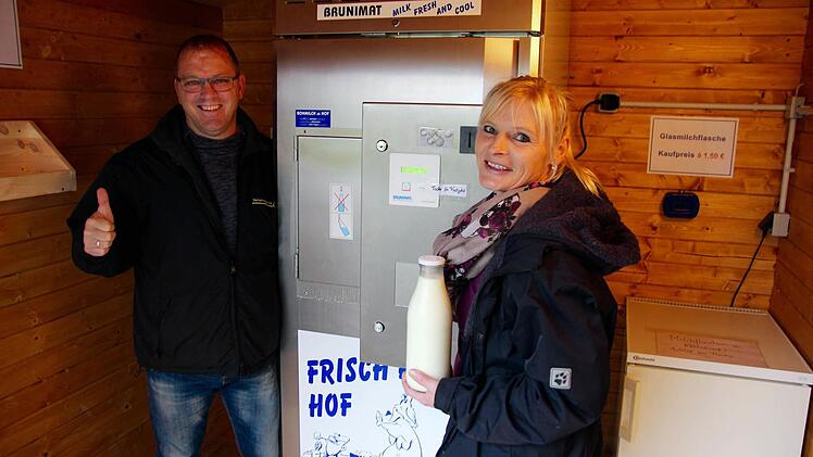 Also haben wir gegoogelt, welche Optionen es gibt." Ehemann Heiko Seiferth (45) fügt hinzu: "Ich war zunächst skeptisch, aber schon an den ersten Tagen ist es gut gelaufen." Ihm zufolge waren seit der Eröffnung vergangenen Donnerstag ungefähr 30 Kunden da, sogar aus Lichtenfels. Sie sind durch Hinweisschilder an der Straße auf die Milchtankstelle aufmerksam geworden.