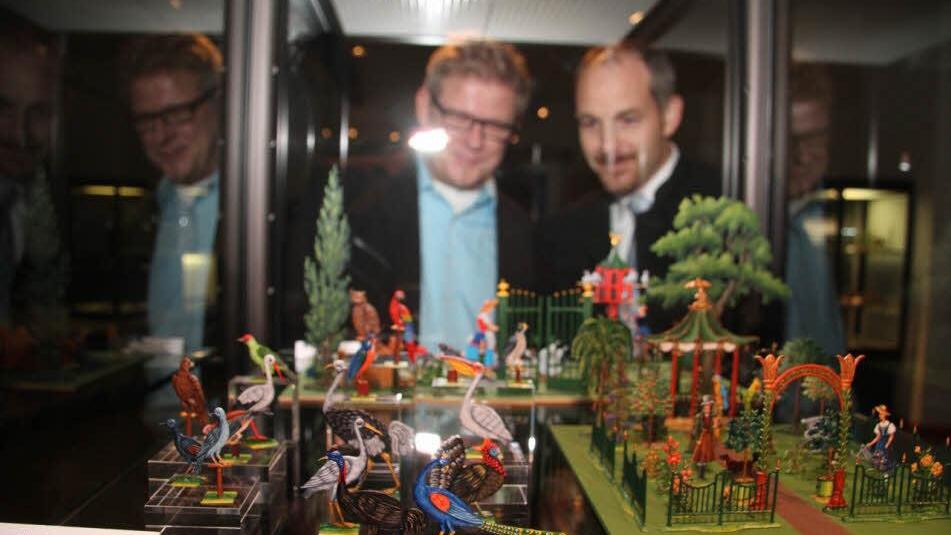 "Zinnfiguren sind nicht nur Soldaten", bricht Grobe immer wieder eine Lanze für die vielen anderen Motive, denen sich die Nürnberger Traditionsfirma angenommen hat. Auf der Plassenburg sind viele naturkundliche Darstellungen zu sehen, Tiere oder der zoologische Garten, der 1869 graviert worden ist und den Graf Bülow von Dennewitz zur Verfügung gestellt hat. Selbst Bürgermeister Frank Wilzok und der stellvertretende Landrat Jörg Kunstmann standen zur Eröffnung staunend vor den unglaublich bunten Schaukästen, die mit Tausenden von Figuren ausgestattet sind. Viele Sammler haben ihre Kunstwerke zur Verfügung gestellt.