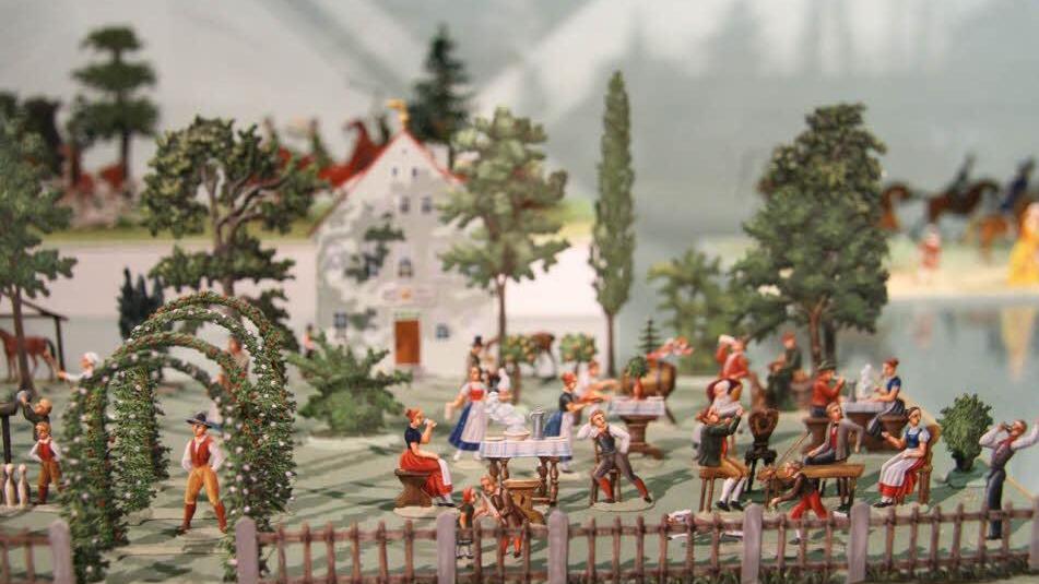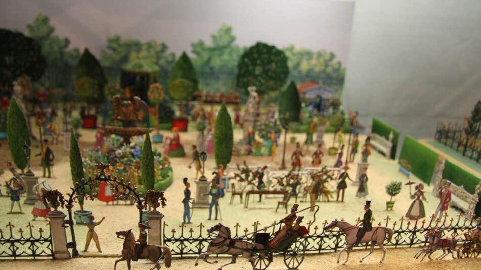 Diese feine -Zinnfigurenarbeit aus der Werkstatt Heinrichsen in aufwändiger Sammlerbemalung ist eine der absoluten Höhepunkte, findet auch Brigitte Grobe, die heutige Inhaberin der Firma Heinrichsen. Doch in dem Lustgarten gibt es noch viel mehr zu entdecken; Springbrunnen, spielende Kinder, eine feine Dame mit Cockerspaniel Mädchen oder einen Kavalier, der für seine Angebeteten eine rote Rose pflückt. Für die heutige Inhaberin der Traditionsfirma Heinrichsen ist die Gartenszene, die derzeit auf der Plassenburg zu sehen ist, eines der schönsten in der gesamten Ausstellung.