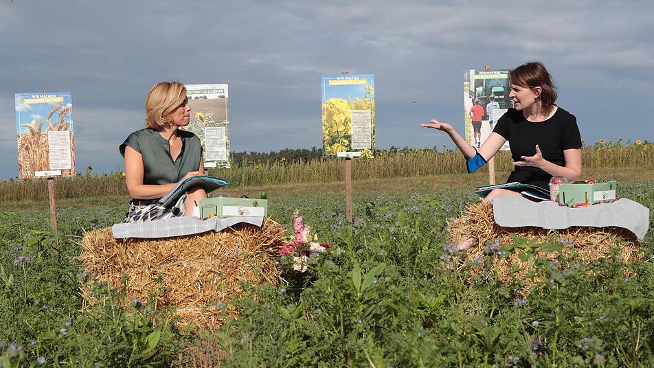 "Ist toll hier", sagt die 48-Jährige, als sie gegen 9.15 Uhr ihrem Wagen entsteigt und sich umblickt. Kein Wunder: blauer Himmel, ein Sonnenblumenfeld in der Nachbarschaft. Strohballen sind in einem Kreis drapiert und dienen als Sitzgelegenheit. Landwirtschafts-Idylle pur.