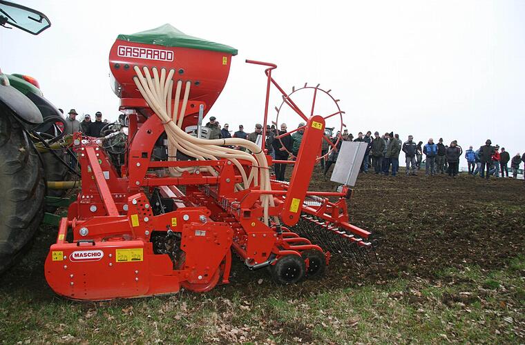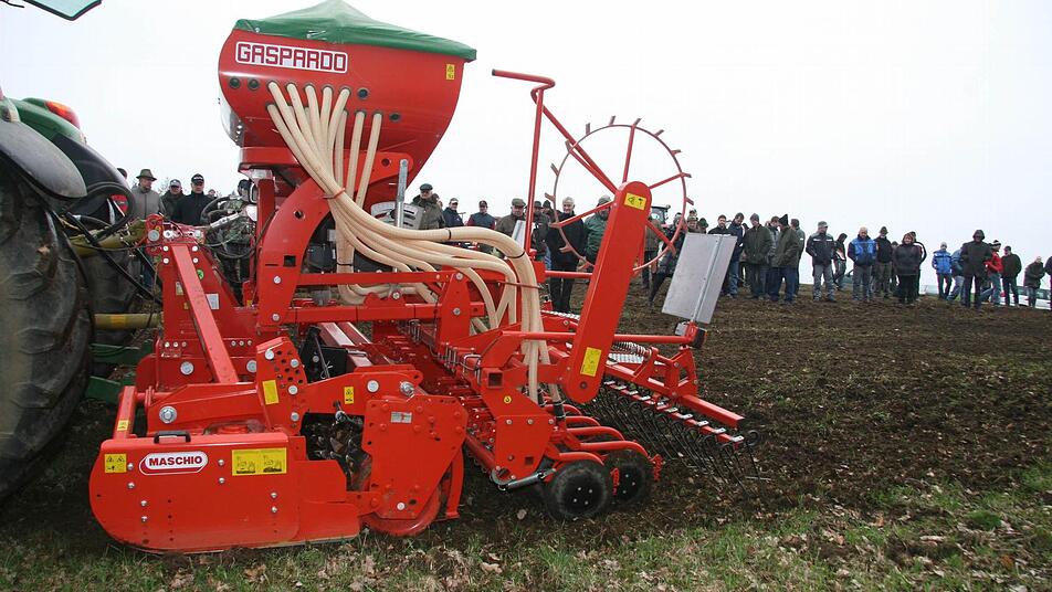 Außerdem stellten sich ein Rapido, ein Büffel sowie eine Kreisegge mit Drillkombi dem Praxistest - alles drei spezielle landwirtschaftliche Gerätschafen, die in einem Arbeitsgang einebnen und säen können. Der Rapido hatte große Probleme bei den nassen Bodenverhältnissen. "Aber es kommt auf die Lage, auf die Witterung, auf die Gegebenheiten an", kommentierter Werner Friedlein vom Maschinenring den Test.