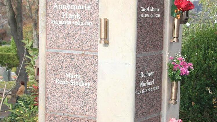 Die Urnenstelen sind äußerst beliebt, auch wenn die einzige Individualität darin besteht, ob sie Lämpchen und Vase bekommen sollen.