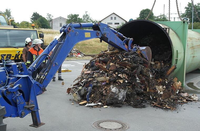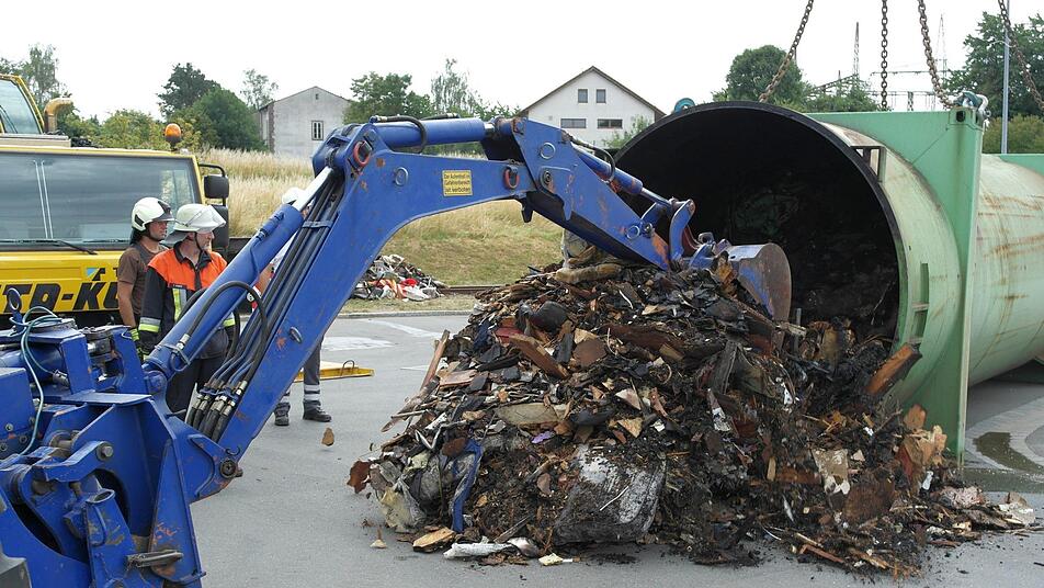 Der Bahnwaggon sei nicht beschädigt worden, den Container könne man sicher für 3000 bis 4000 Euro richten. "Wir werden den komplett sandstrahlen und dann neu lackieren lassen." Rechne man die Kosten für den Einsatz des Kranwagens der Firma Klug und der Feuerwehrleute hinzu, dürfte der genannte Betrag wohl kaum überschritten werden.