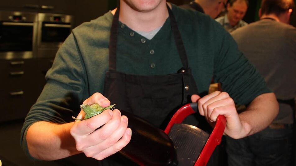 Bei uns zu Hause hat normalerweise Kochen nicht die oberste Priorität", musste Riedinger zugeben. "Es ist wie zu Hause - ich muss Kartoffeln schälen", wunderte sich Riedinger dann, wie viele Kartoffeln man doch benötigt, um für elf Paare ein Zwischengericht vorzubereiten. Doch ein bisschen Spaß machte ihm die Schnippelei trotzdem.