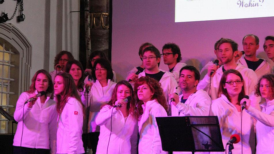 Mit dem Musical "Die Reise" gelingt es dem Evangelischen Freundeskreis Hof einmal mehr, die Menschen zu begeistern. Der 26-köpfige Chor wird durch fünf Bandmitglieder bereichert.