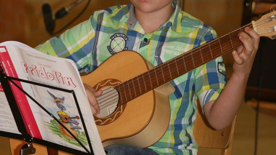 Zu den beliebtesten Instrumenten gehört die Gitarre: Cosmas und Thomas Hagen, Leon Krügel, Leonie Witzgall und Lilly Würffel, Lara Pfändner, Eva Wollmerstedt sowie Corinna Spindler, Julian Heinz, Antonia Schmidt, Mona Klaus und Felix Schmidt sowie Martin Bittermann haben die Gitarre zu ihrem Lieblingsinstrument gewählt.