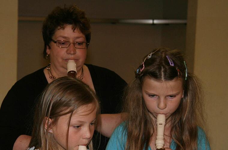 Sie zeigte auch an der Flöte, wie musikalisch sie ist: Gemeinsam mit Lena Müller gab sie ein Bouree von Johann Christoph Pez zum Besten.