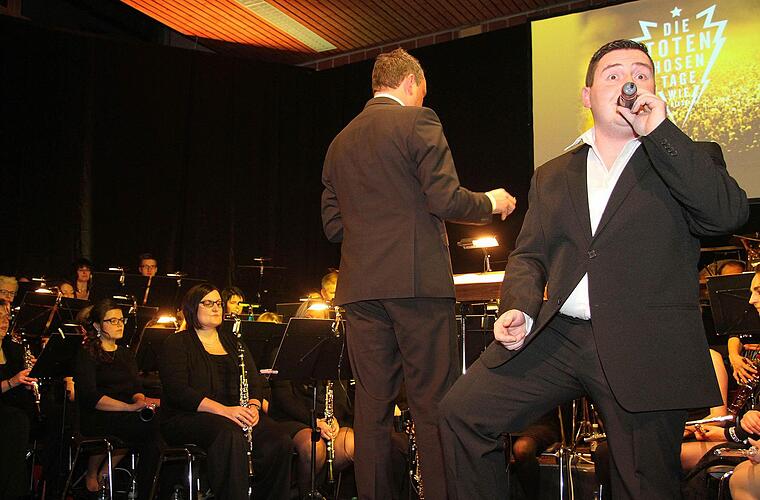 Mit dem Toten-Hosen-Knaller "Tage wie diese" trat dann Andreas Caspar alias "Cash" ins Scheinwerferlicht. Der Sänger machte klar, dass auch moderne Musik ganz im Sinne des sinfonischen Blasorchesters ist. Und mit dem Radetzky-Marsch und dem "Metallica"-Titel "Nothing else matters", bei dem Andreas Caspar mit seiner Performance ein Glanzlicht setzte, ging ein einzigartiger musikalischer Abend zu Ende.