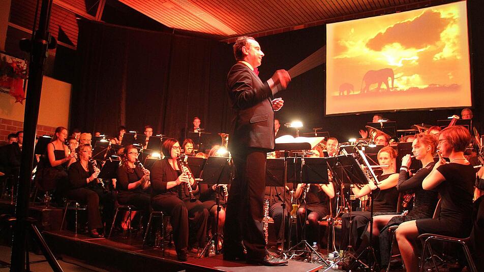 Das Orchester spielte außerdem Filmmelodien aus "Star Trek", "Moonriver", "Over the Rainbow" und "Indiana Jones" und entführte die Zuhörer auf eine 80-Tage-Reise um die ganze Welt - in knapp zehn Minuten. Vor den Augen und Ohren der Zuhörer trompeteten Elefanten, erklang japanische, hauchzarte Musik und indische Melodien. Damit die Illusion perfekt wurde, hatte Eschenbacher einen Bilderreigen, den Techniker Kai Fischer mit einer Riesen-Leinwand in den Hintergrund projizierte, zusammengestellt.