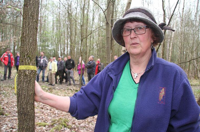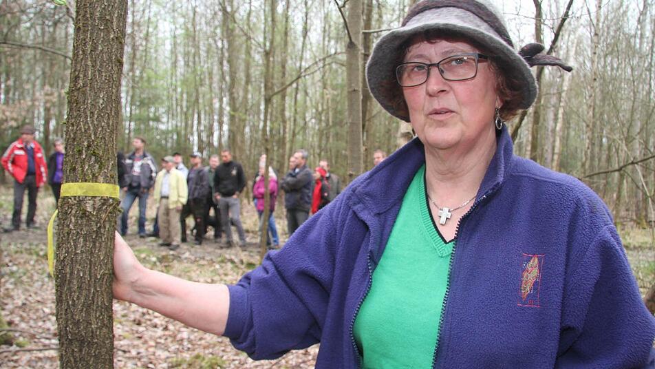 Beim letzten Termin im Rahmen des Bildungsprogrammes Wald zeigte Rosa Jurkat den 24 Waldbesitzern stolz Bäume, die mit einem gelben Plastikring gekennzeichnet waren. Das sind die Z-Bäume, also die Zukunftsbäume.