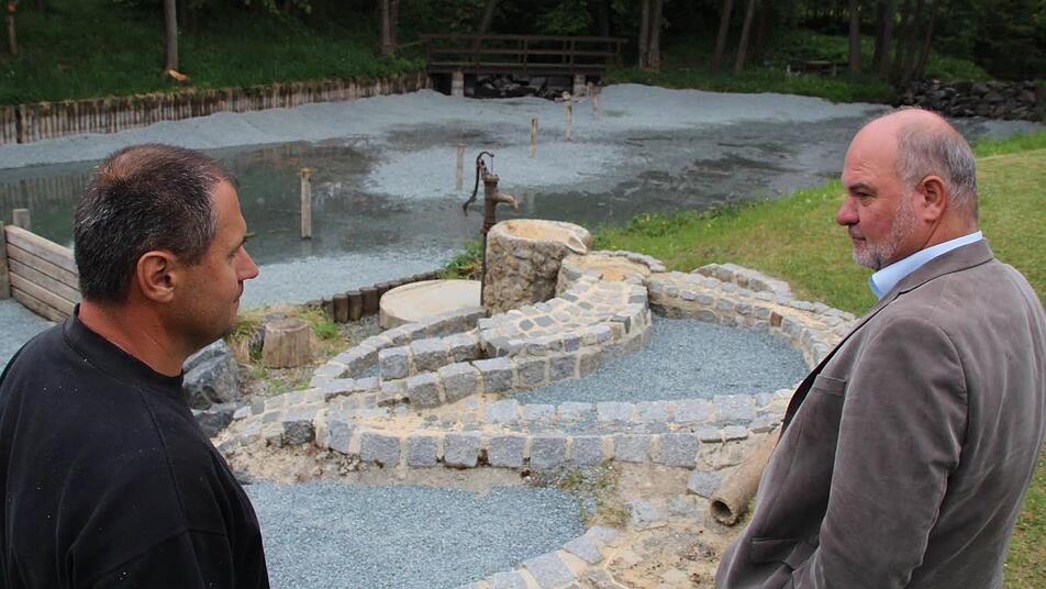 "Der Badeweiher musste wieder einmal von Grund auf gereinigt werden", sagt Bürgermeister Ralf Holzmann zu dem Thema. "Wir haben ihn komplett ausgebaggert." Ausgeführt hat diese Arbeiten eine Firma mit Geräten, die der Bauhof nicht zur Verfügung hat. Der erforderliche Bagger zum Beispiel war mit Kunststoffketten ausgerüstet. "Damit nicht so große Schäden angerichtet werden", erklärt Holzmann. Danach wurde das Naturbecken, das über Schwimmer-, Nichtschwimmer- und Kleinkinderbereich verfügt, mit einem neuen Kiesbett ausgestattet.