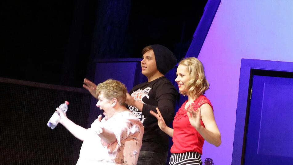 Das mag an der Autorin Isabella Leicht liegen, die in Trebgast selbst Regie führte. Und an ihrer Biografie, laut der sie zwar herkömmlich Akkordeon spielt, aber auch Jazz-Tanz pflegt. Das schlägt sich auch im Stück nieder, in dem sie die Schauspieler zu Höchstleistungen animiert.