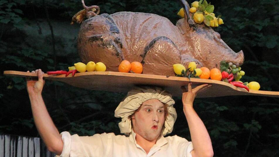 Ein relativer Newcomer, der auffiel: Daniel Ganzleben, der als Koch, Schuldknecht und vor allem als Mammon in golden-dekadentem Kostüm die Blicke auf sich zog.