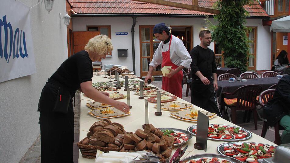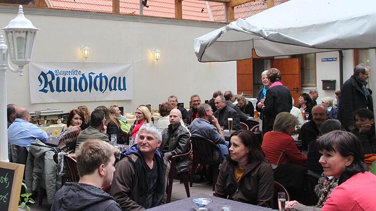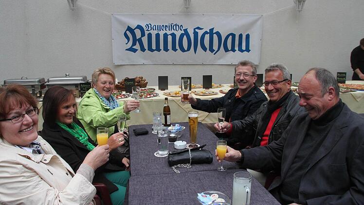 Mit dem Besuch der Vorstellung allein war es aber nicht getan: Denn nachdem das Stück zu Ende war, mischten sich die Schauspieler in voller Kostümierung unter die Besucher. Da wurde bei einem Gläschen Sekt, zu dem die Bayerische Rundschau eingeladen hatte, noch geplauscht, gefachsimpelt und gelobt.