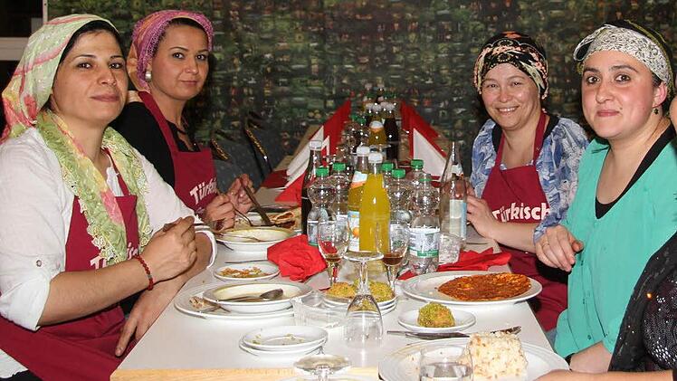 Um Punkt 21.29 Uhr ging die Sonne unter - und das Fastenbrechen mündete in ein Fest, mit dem vor allem die Frauen der türkischen Gemeinde viel Aufwand hatten. Denn 15 Freiwillige standen eine Nacht und einen ganzen Tag lang in der Küche. "Die Nachspeise haben wir schon einen Tag vorher von halb zwölf Uhr bis halb sechs Uhr früh gemacht - nach dem Nachtgebet", erklärt Zöhre Özlan. Es wurde Baklava aufgetischt - eine Kreation aus Blätterteig, Nüssen und Pistazien mit eingekochtem Sirup. Als Vorspeise gab es kalte Linsensuppe mit Minze, türkischen Reis, Lahmacun-Fladenbrot aus Hefeteig mit Rindfleisch und Gemüse gefüllt und Aubergine mit Rinderhackfleisch.